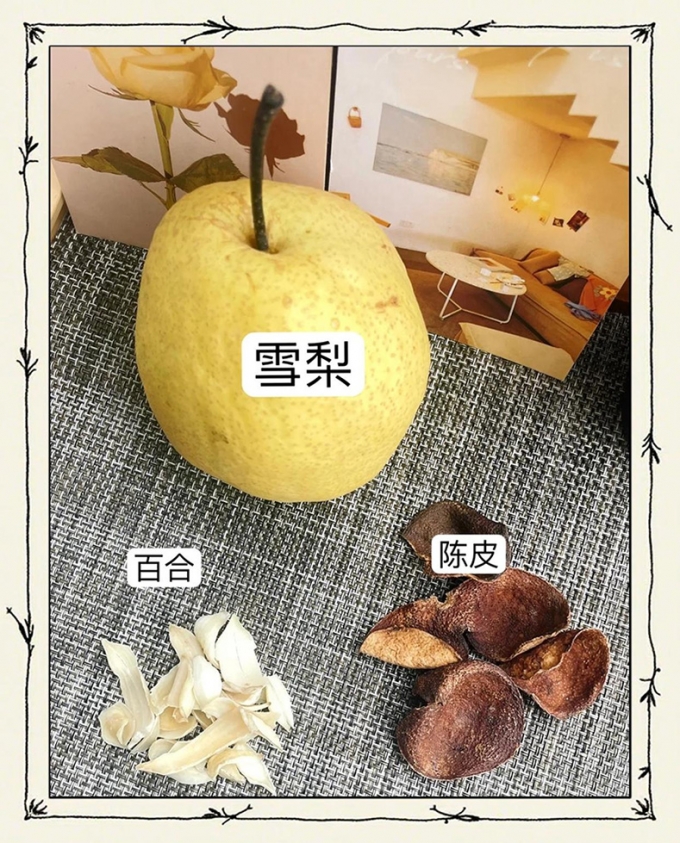 选料:百合、陈皮、雪梨、瘦肉、红枣、姜等。